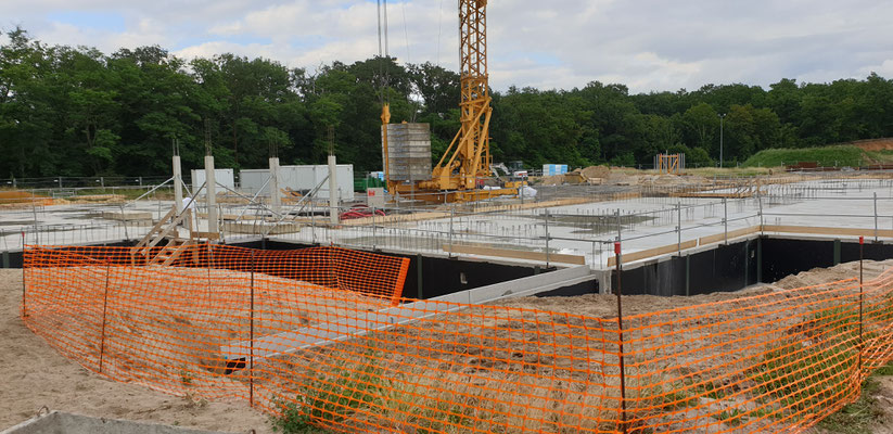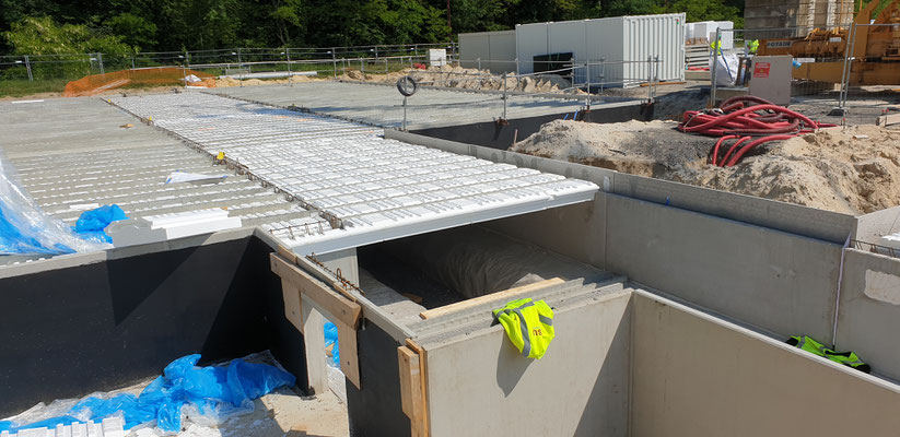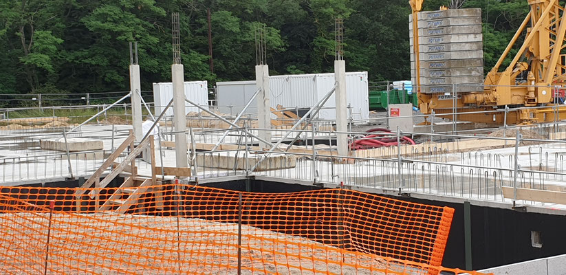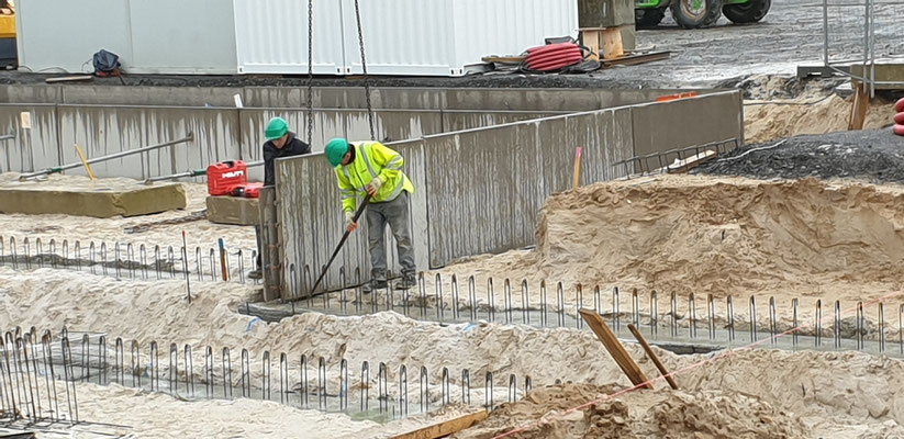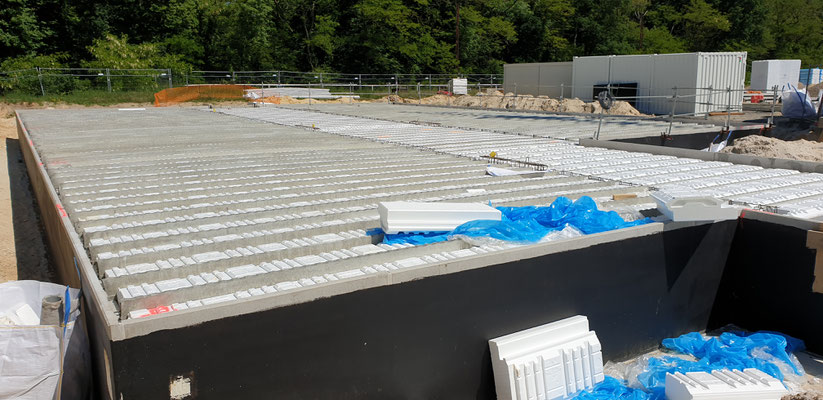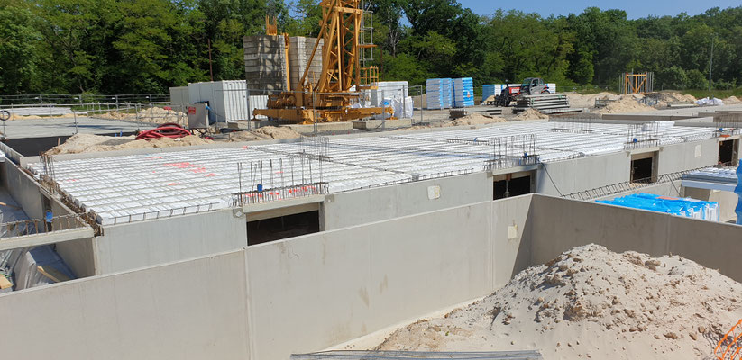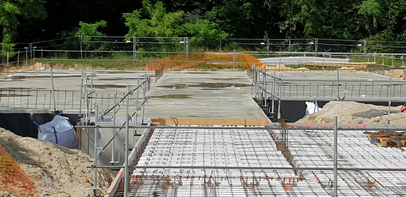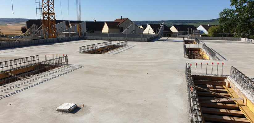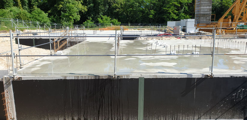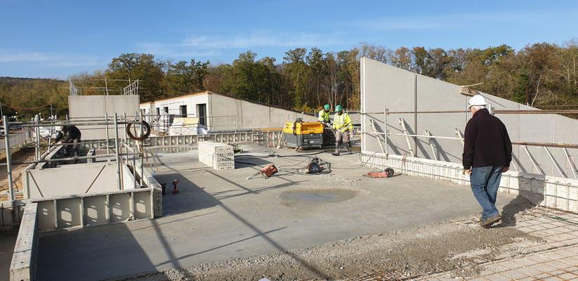 Coulage de la dalle du plancher haut du vide sanitaire de la tranche 1.