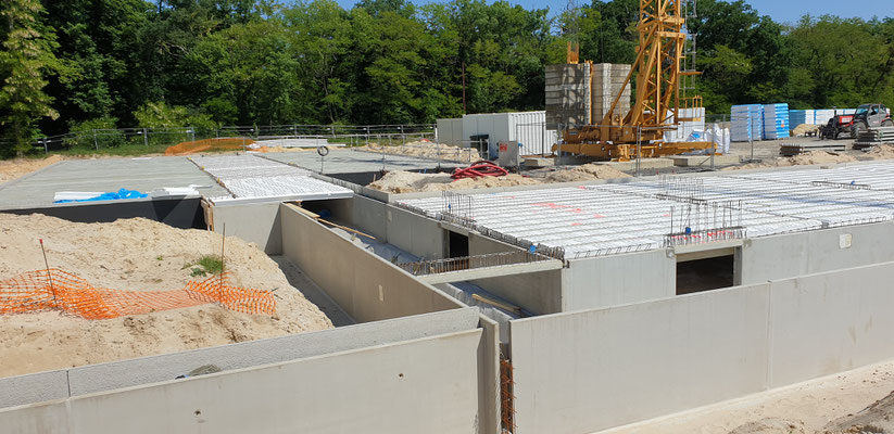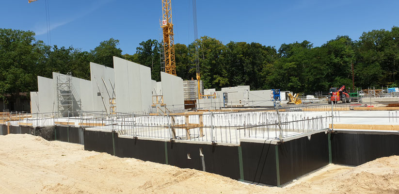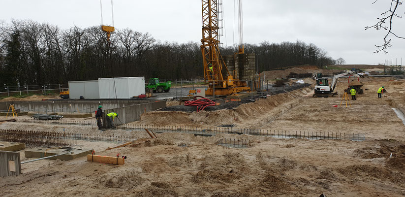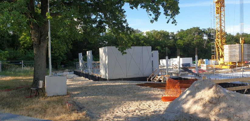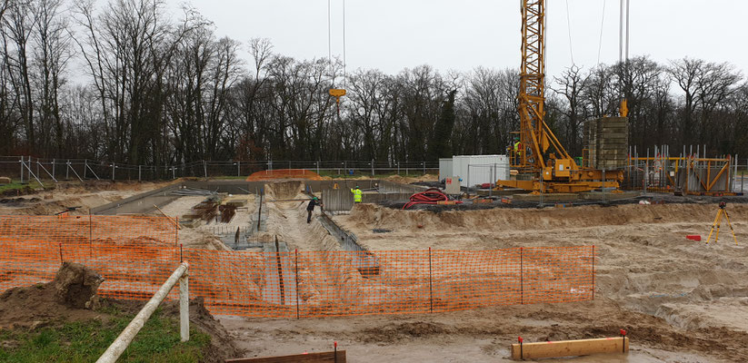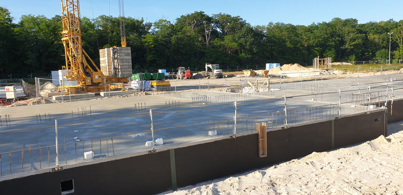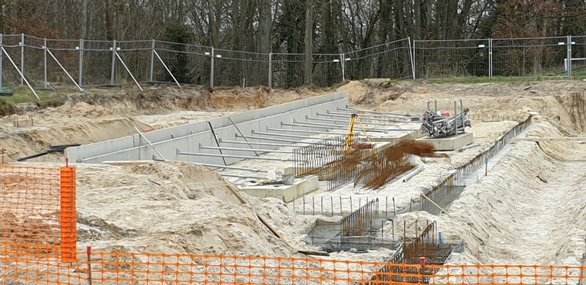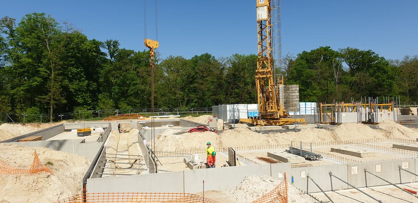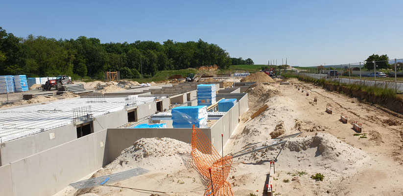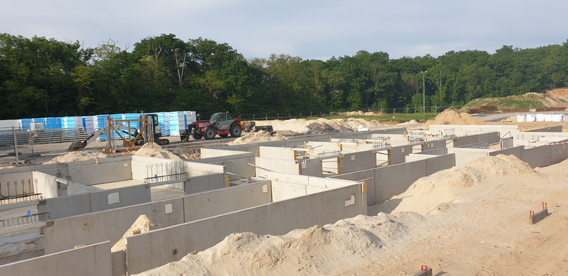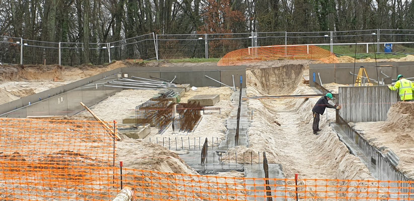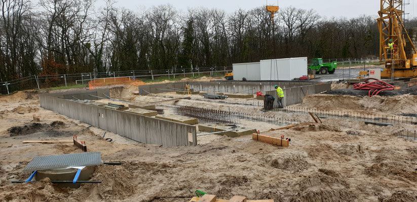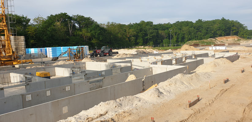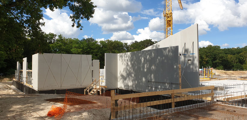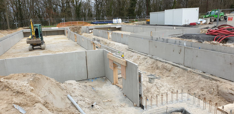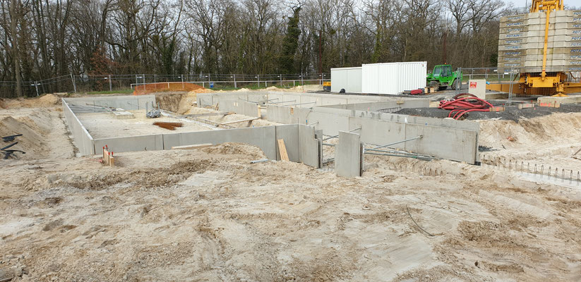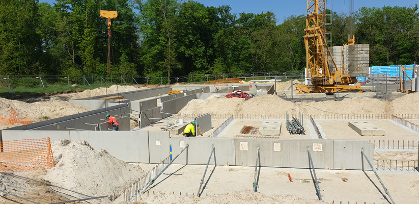 Pose des pré-murs des vides sanitaires des tranches 3 et 4.