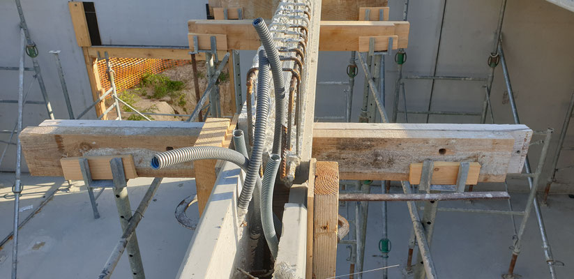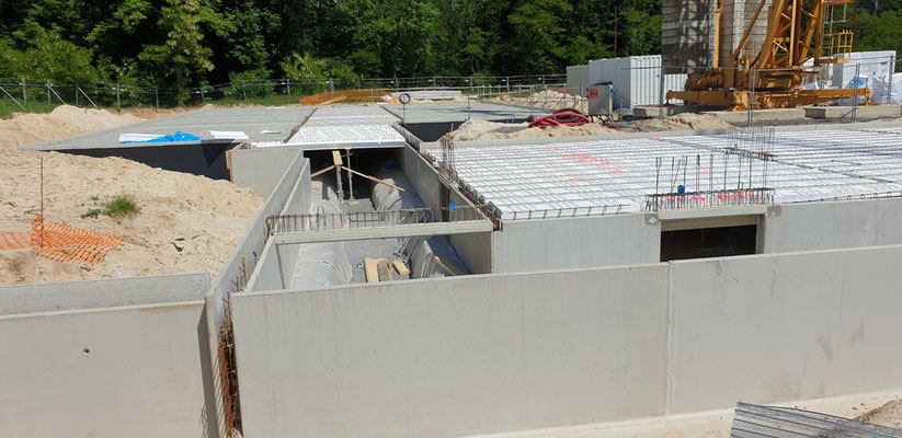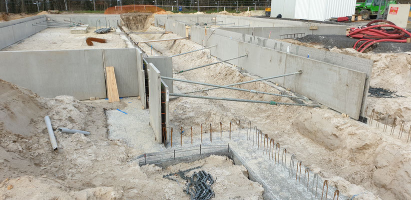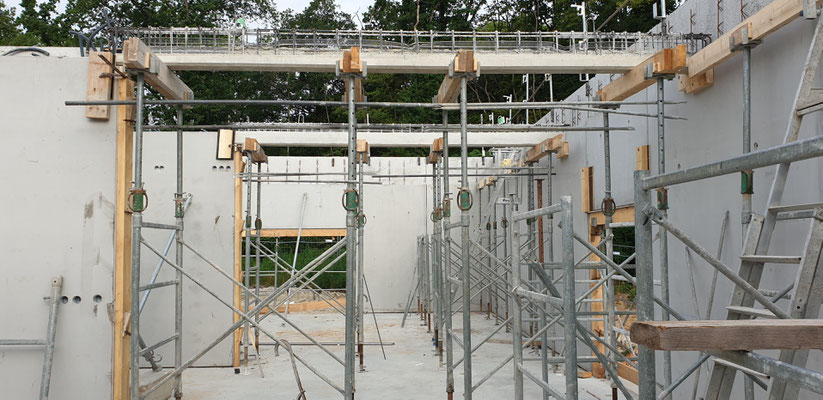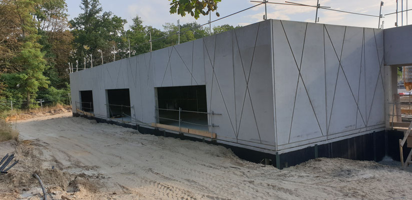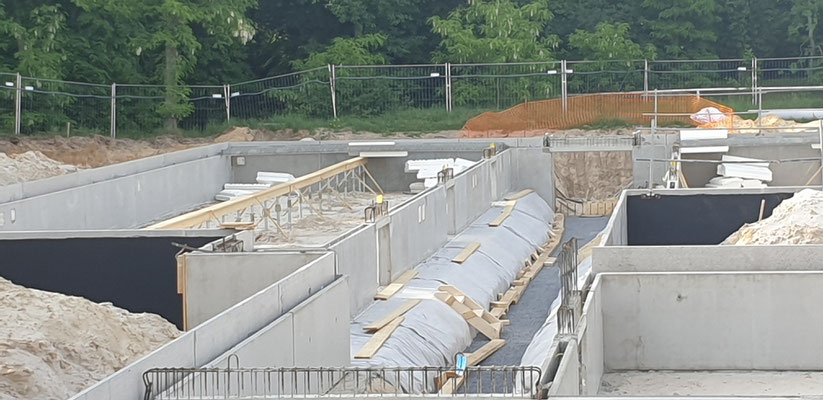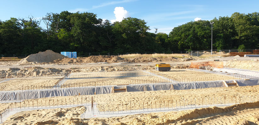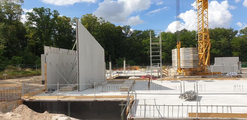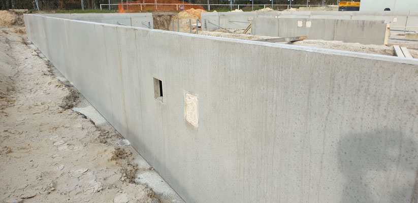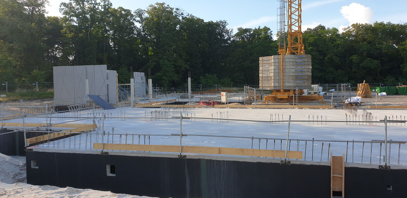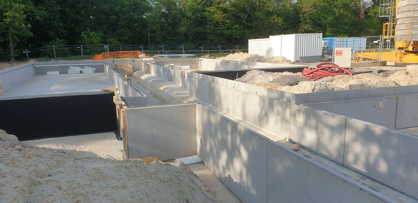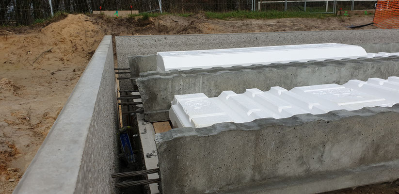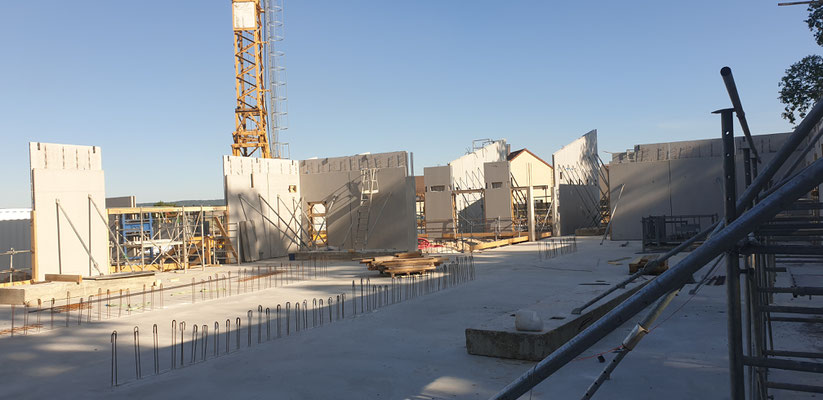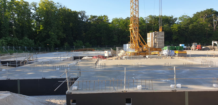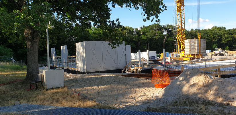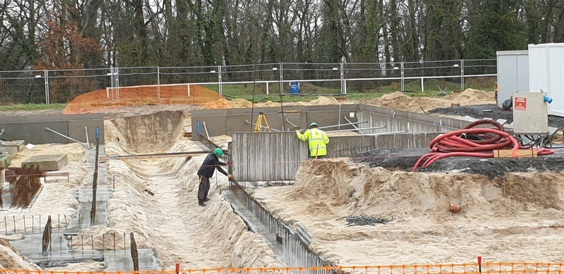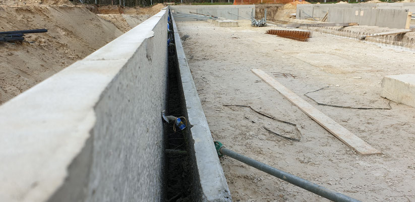 Pose des pré-murs des vides sanitaires des tranches 3 et 4.