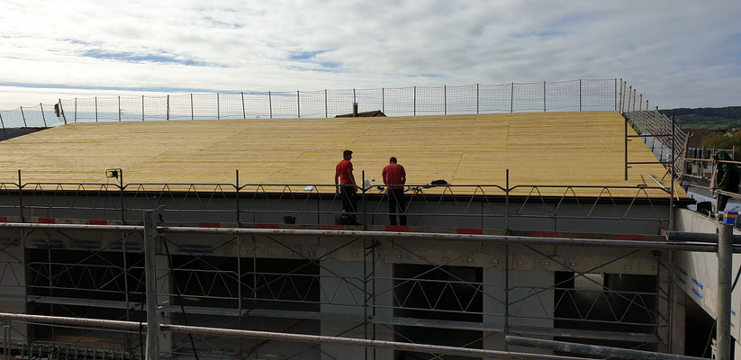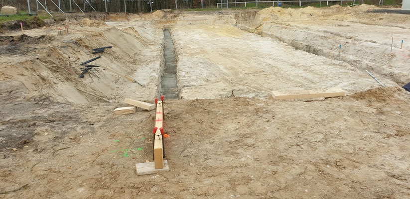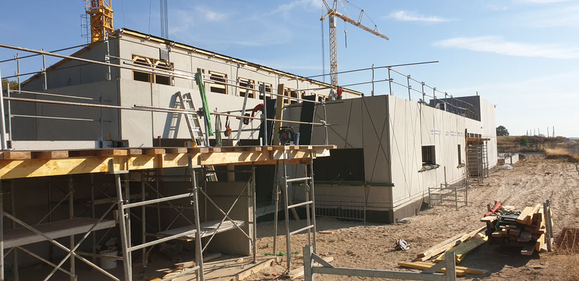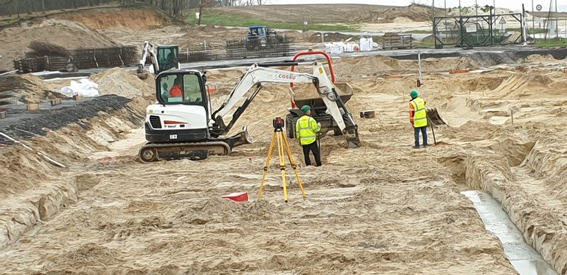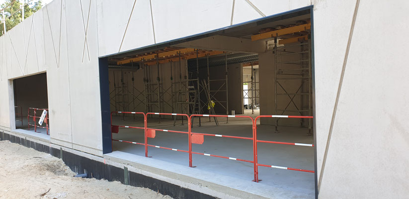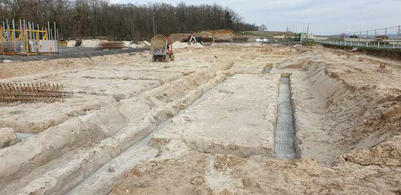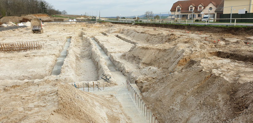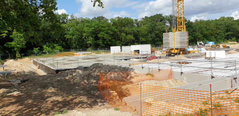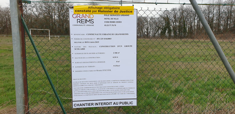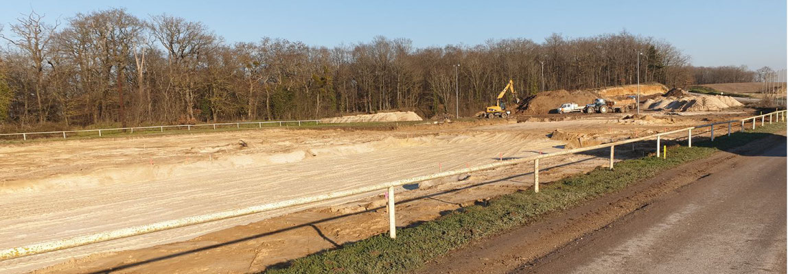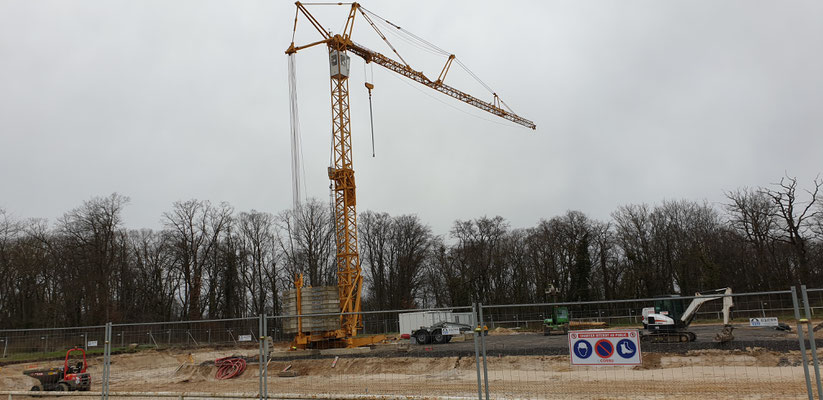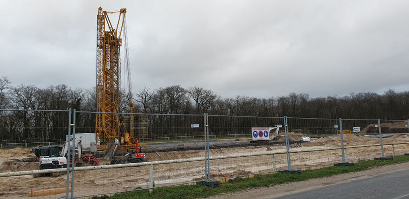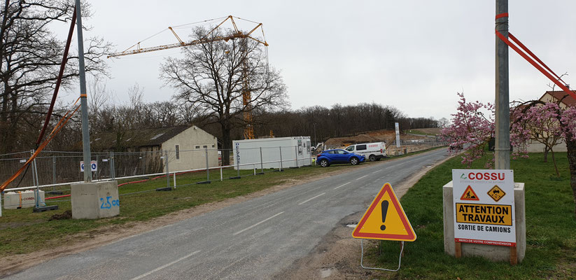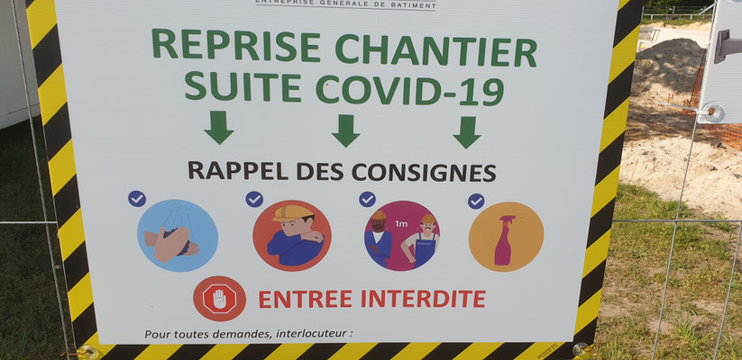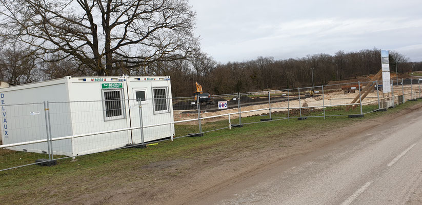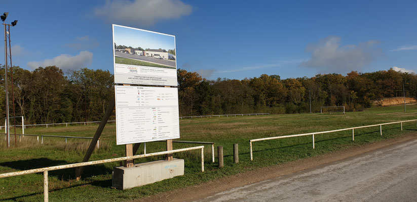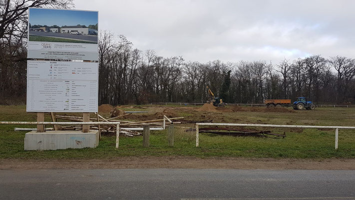 Le véritable panneau de chantier avec le nom des entreprises est installé et la pose de la première pierre est imminente