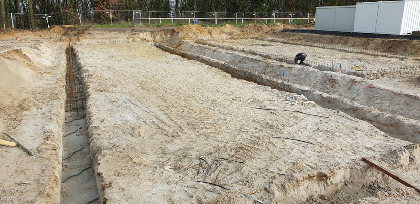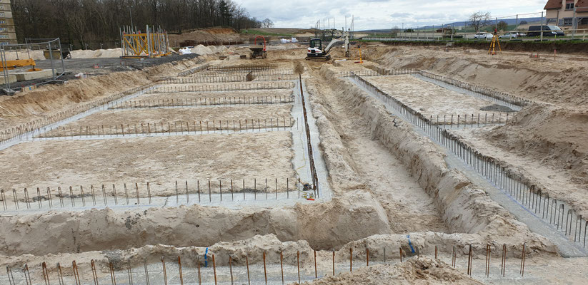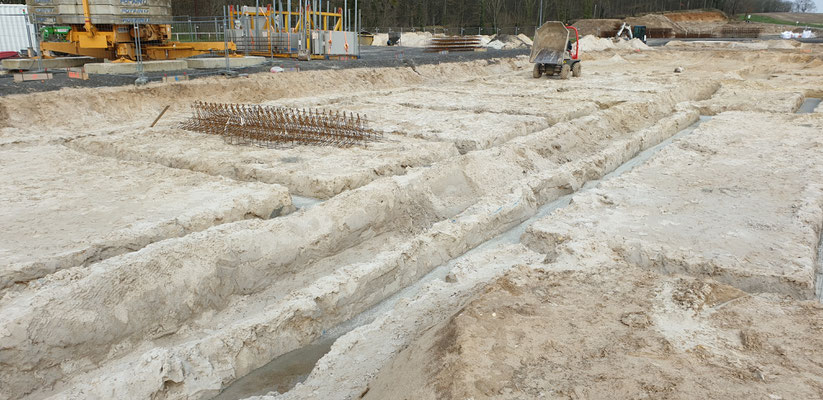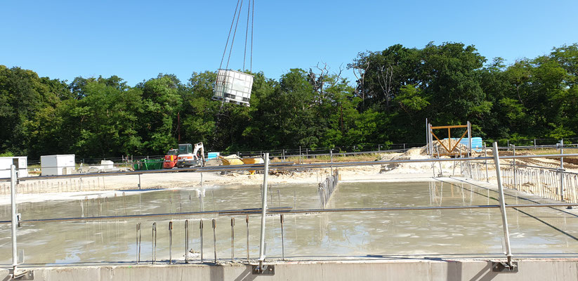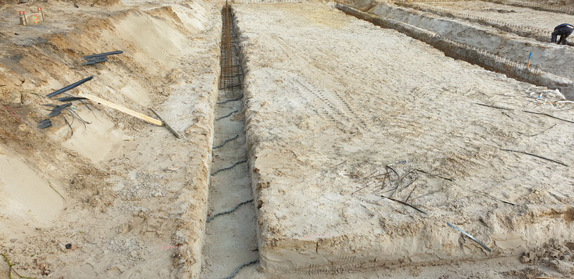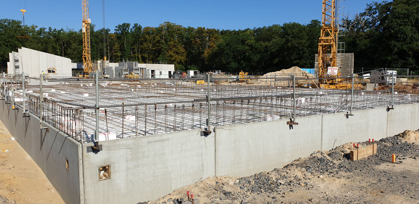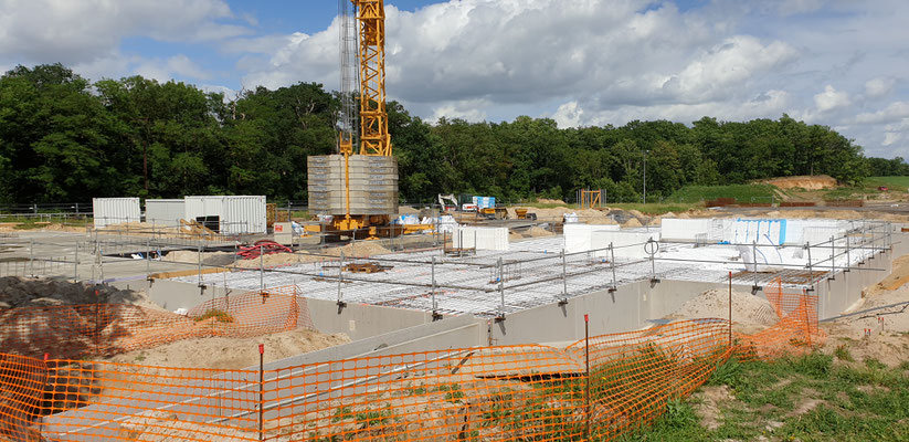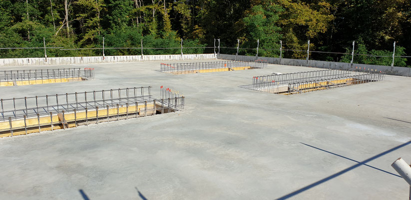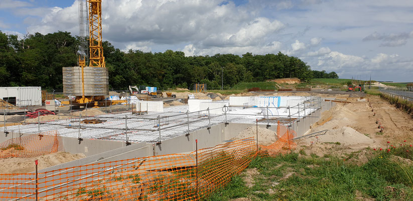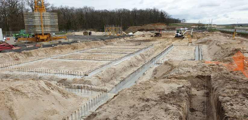 Mise en forme, Mise en place des armatures, béton de fondation de la tranche 1.