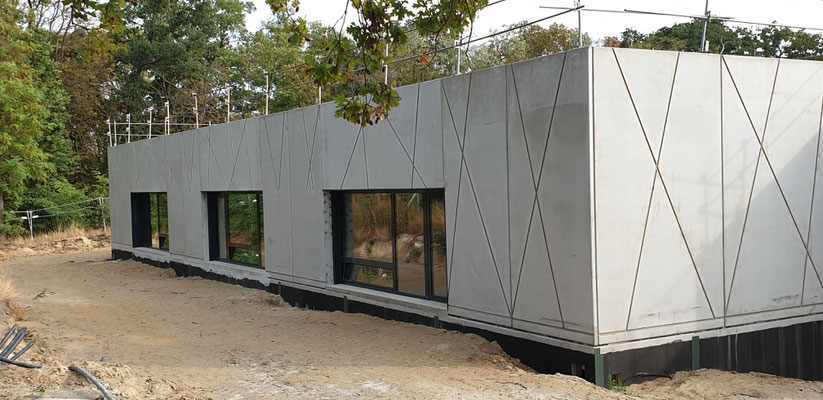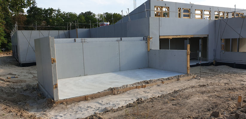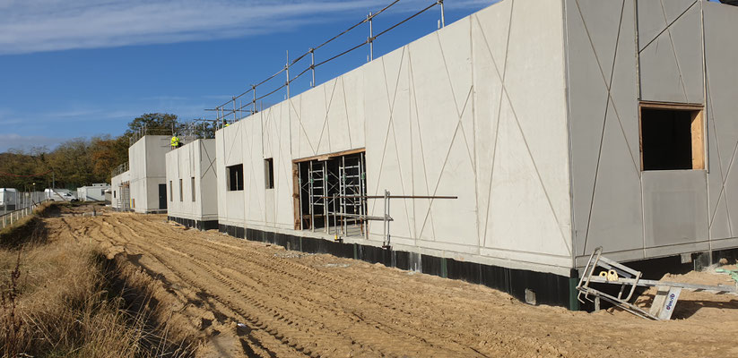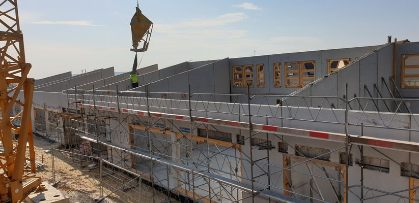 Pose des pré-murs du vide sanitaire de la tranche 3.