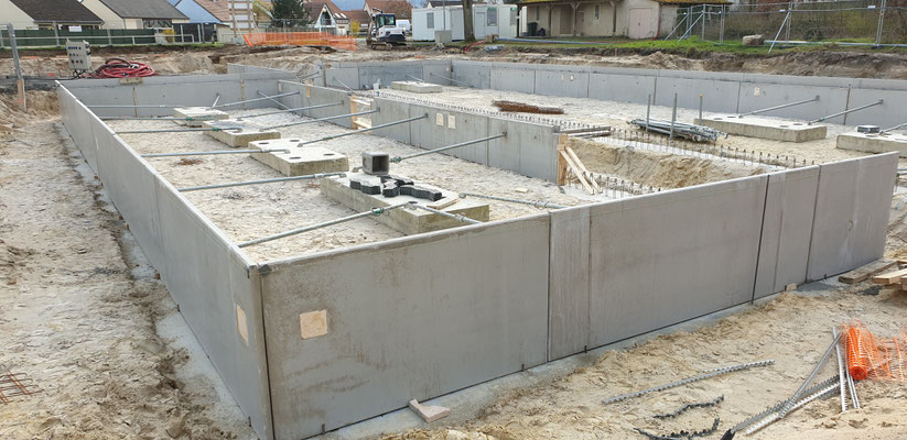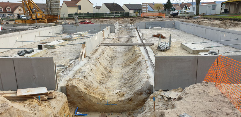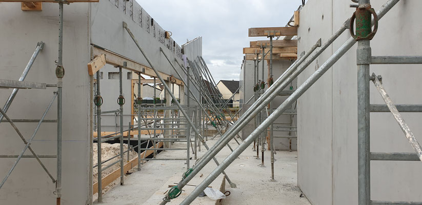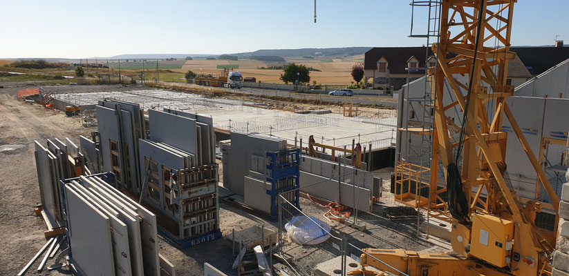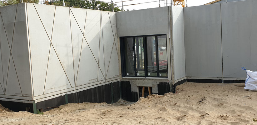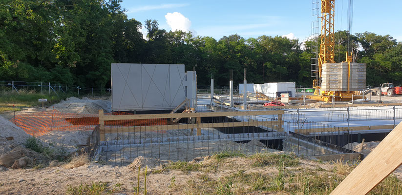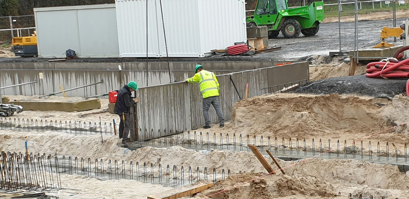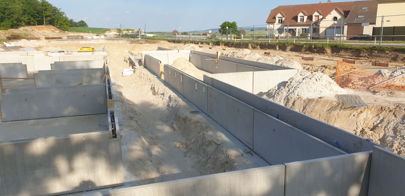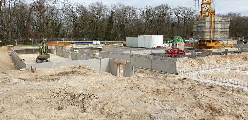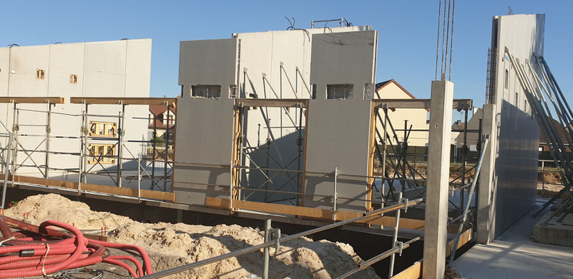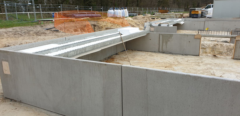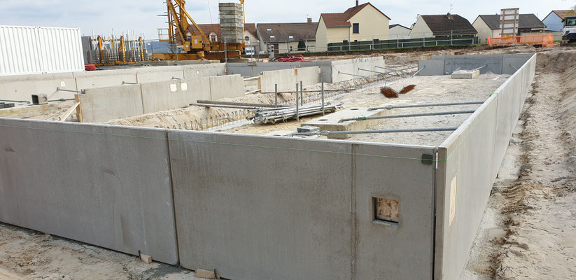 Pose des pré-murs du vide sanitaire de la tranche 1