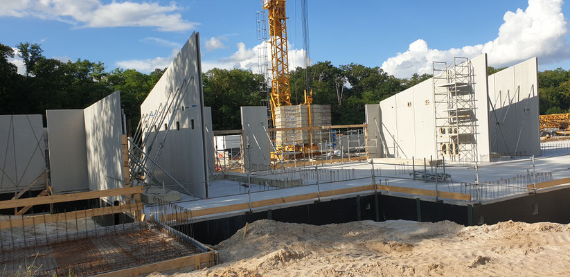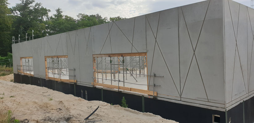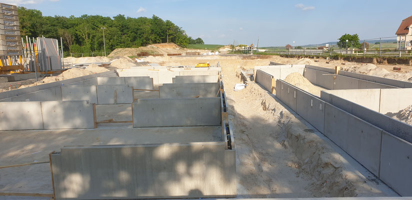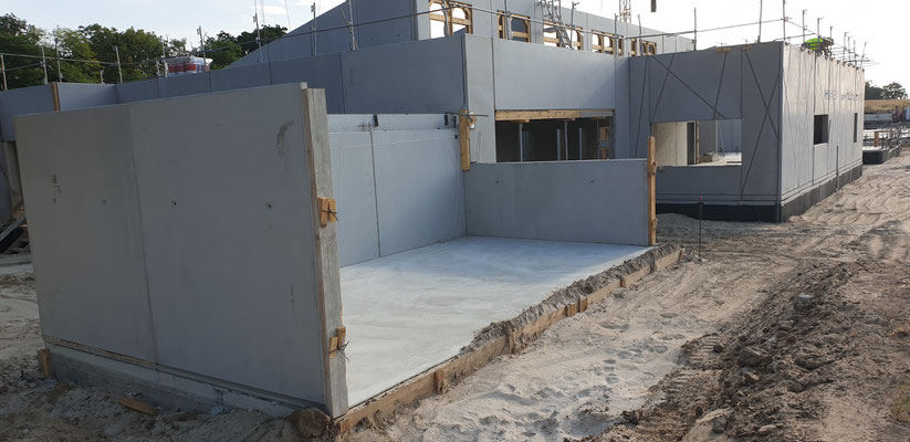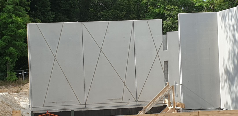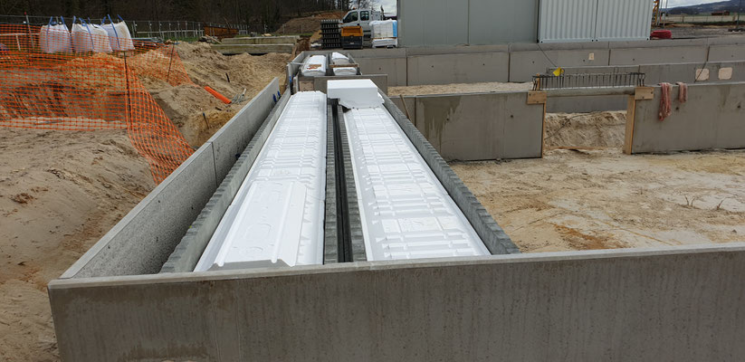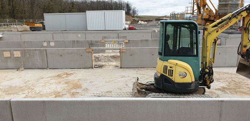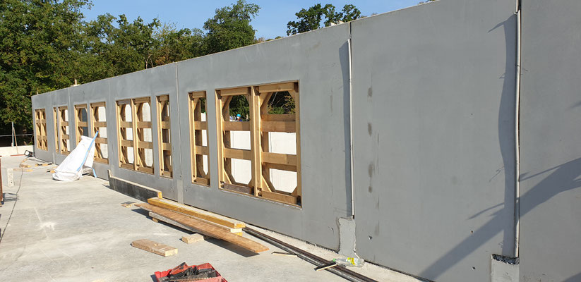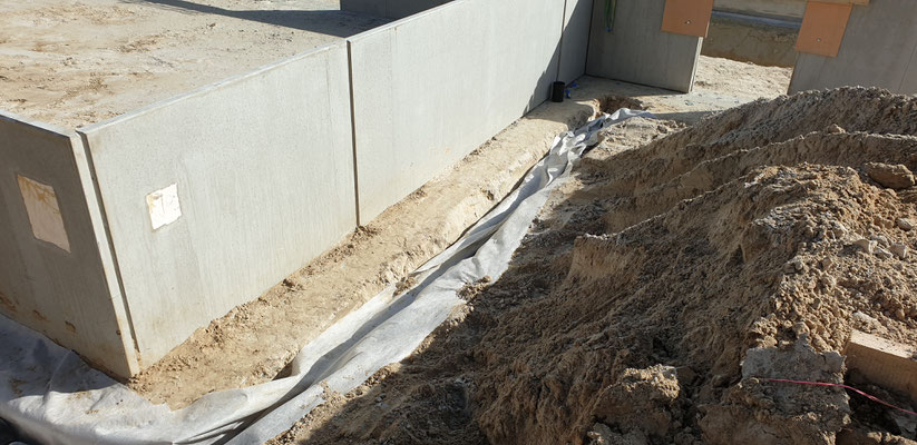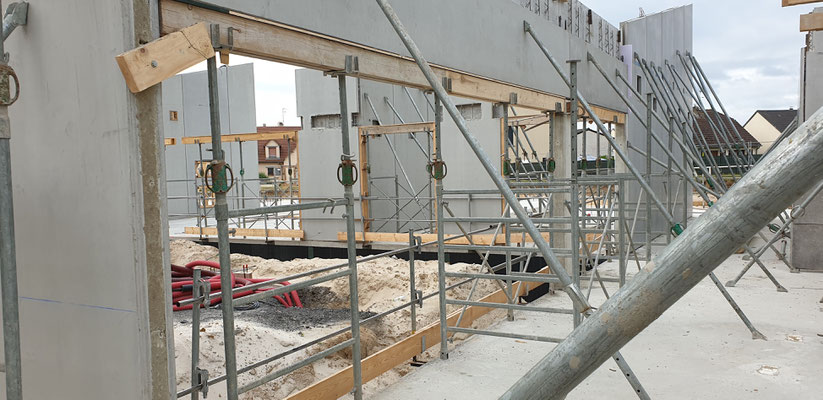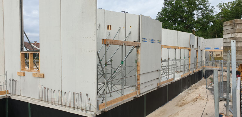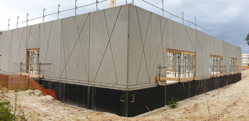 Pose des pré-murs du vide sanitaire de la tranche 1