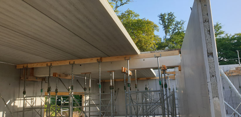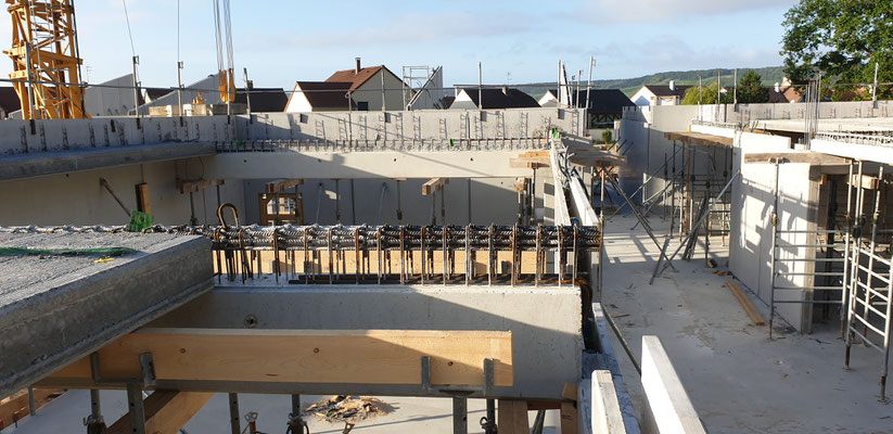 Pose des prédalles et des dalles alvéolaires de la tranche 1