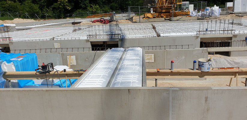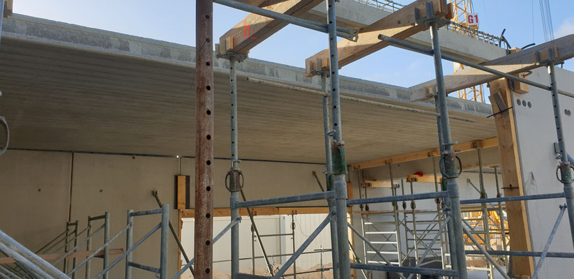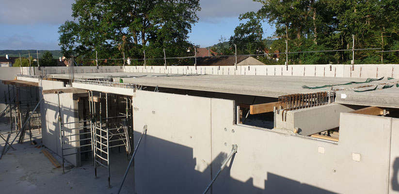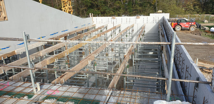Coulage de la dalle du plancher haut du vide sanitaire de la tranche 2 et 3.