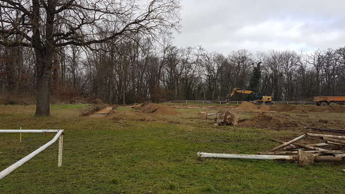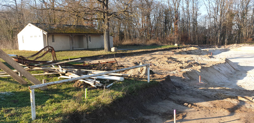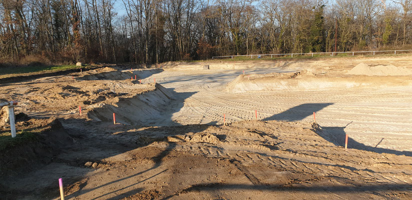 Le terrain est débroussaillé et nettoyé prêt à être refaçonné et aplani.