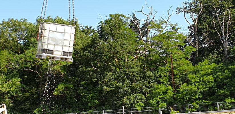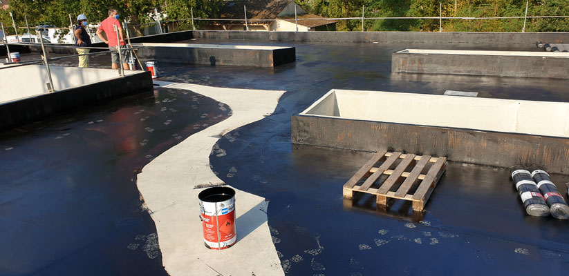 Avec les hausses de températures, l'entreprise COSSU, arrose la dalle fraîchement coulée pour éviter une prise trop rapide.