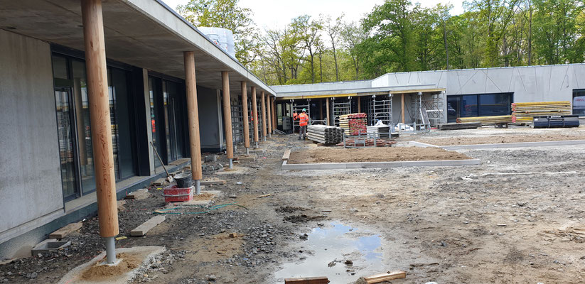 Hormis la nouvelle voirie qui se dessine, les travaux extérieurs ne semblent plus évoluer....