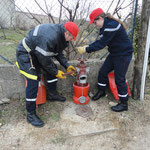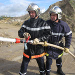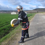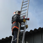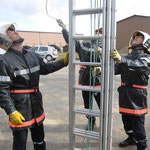 Manoeuvre d'extinction, déploiement de l'échelle à 3 plans et vérification du petit matériel.
